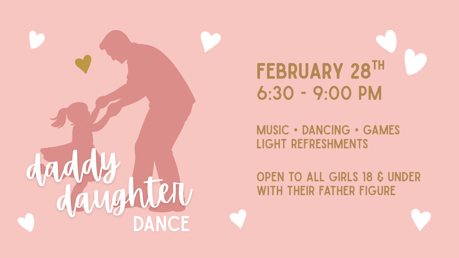 Dads, this is a special opportunity to be intentional about showing your daughters how deeply valued and cherished they are. This formal/semi-formal event is for girls 18 years and younger with their father figure.